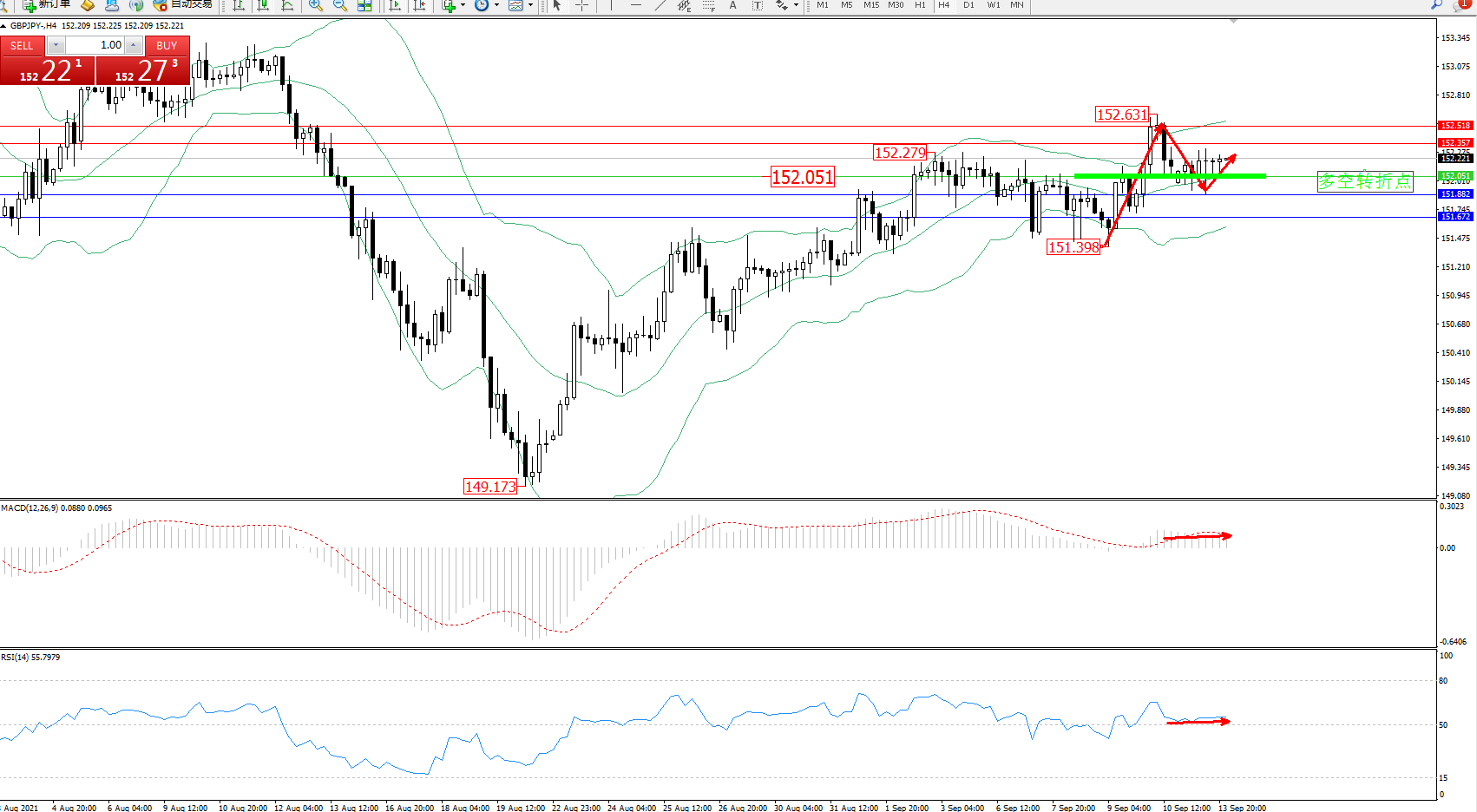 交易策略:152.051上方看涨,目标152.357、152.518
