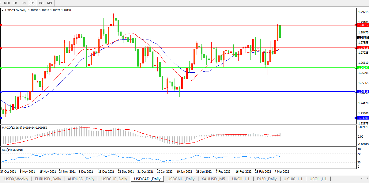 美元兑加元USDCAD    日线图: